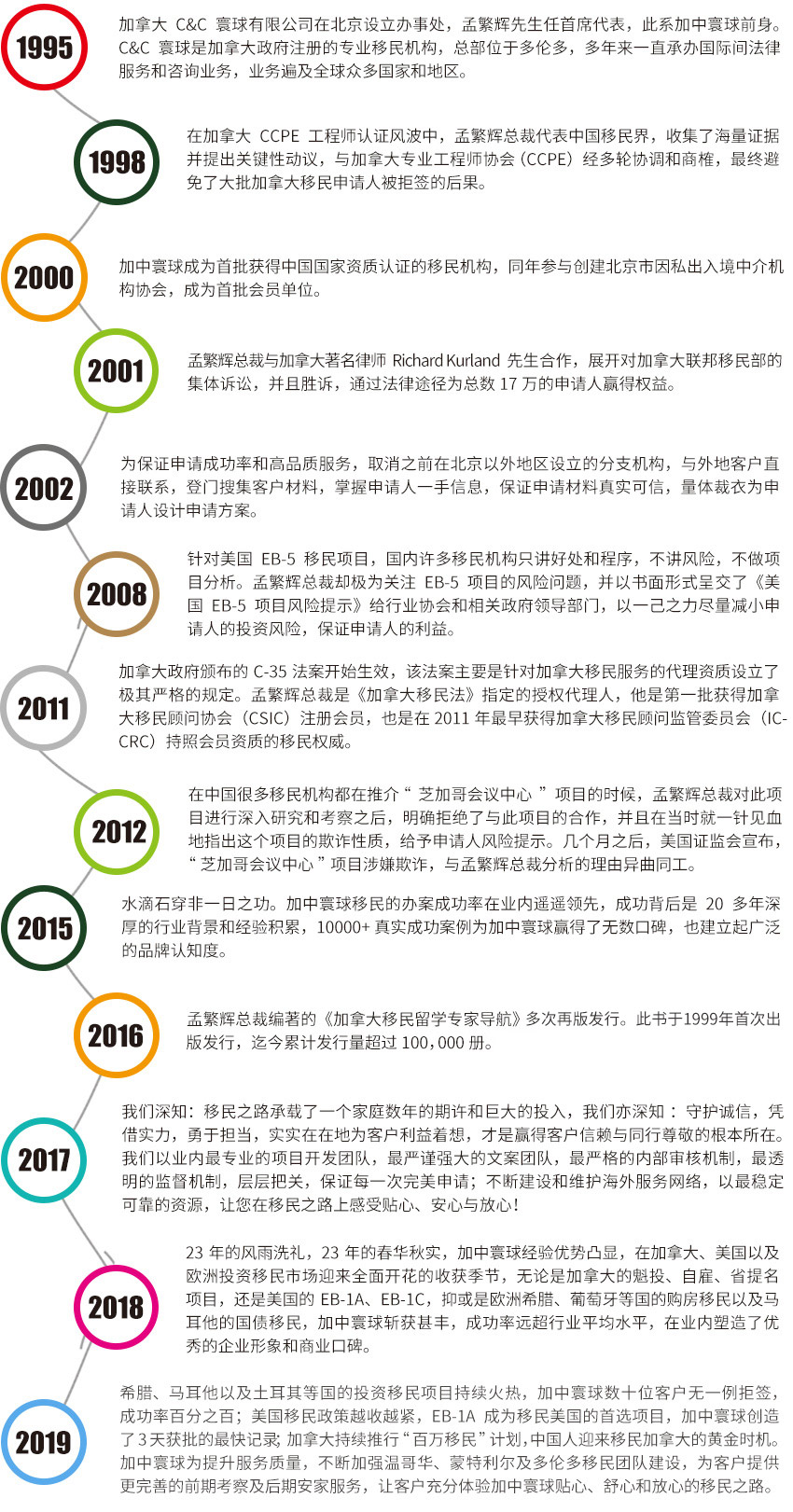 北京加中寰球投资咨询有限公司专注投资移民服务25年,是国内首批经公安部批准的因私出入境中介机构,也是北京因私出入境中介协会创建单位之一。曾被搜狐、新浪等国内多家权威媒体授予“最具影响力移民品牌”、“最具专业权威移民机构”、“中国行业十大影响力品牌”、“中国移民服务典范品牌”。 25年来,加中寰球以专注、专业、诚信为立身基石,已发展成为业务网络覆盖加、美、欧等全球30多个国家和地区,为10000+移民客户提供一站式全球化服务管理的大型移民专业机构。